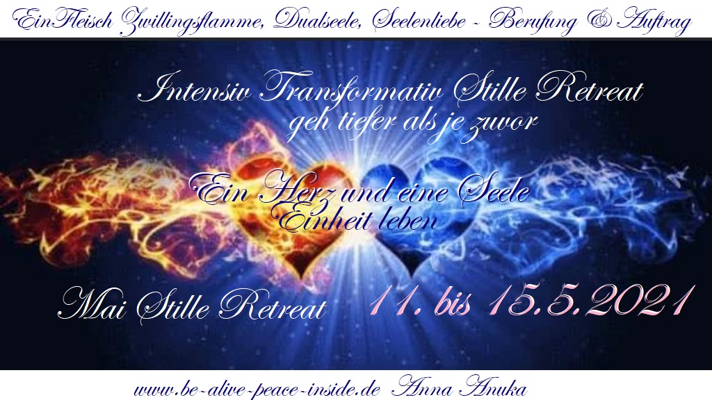 Mai 5 Tage Stille Retreat vom 11.- 15.5.2021 Neumond im Stier "Erde werde, was aus Gott kommt" - Kostenbeitrag je 5.555 € (auch Paare, je) "Vom Trainer für Trainer" Du spürst, dass du ein Trainer oder Führer und Unterstützer für Menschen bist.. oder du bist es bereits und möchtest vertiefend an dir wirken. Wir gehen tiefer.. Es ist NUR für 2 TEILNEHMER ausgeschrieben vom 11.5. - 15.5.2021 Materialisieren dessen was bisher schwer für dich in deinem Leben zu generieren war, vertiefend mit Gott. | Juli 5 Tage Stille Retreat vom 10.7.- 14.7.2021 Neumond im Krebs "Durchlässigkeit - Dein Mann, dein innerer Mann ganz weich wird" - Kostenbeitrag je 5.555 € (auch Paare, je)