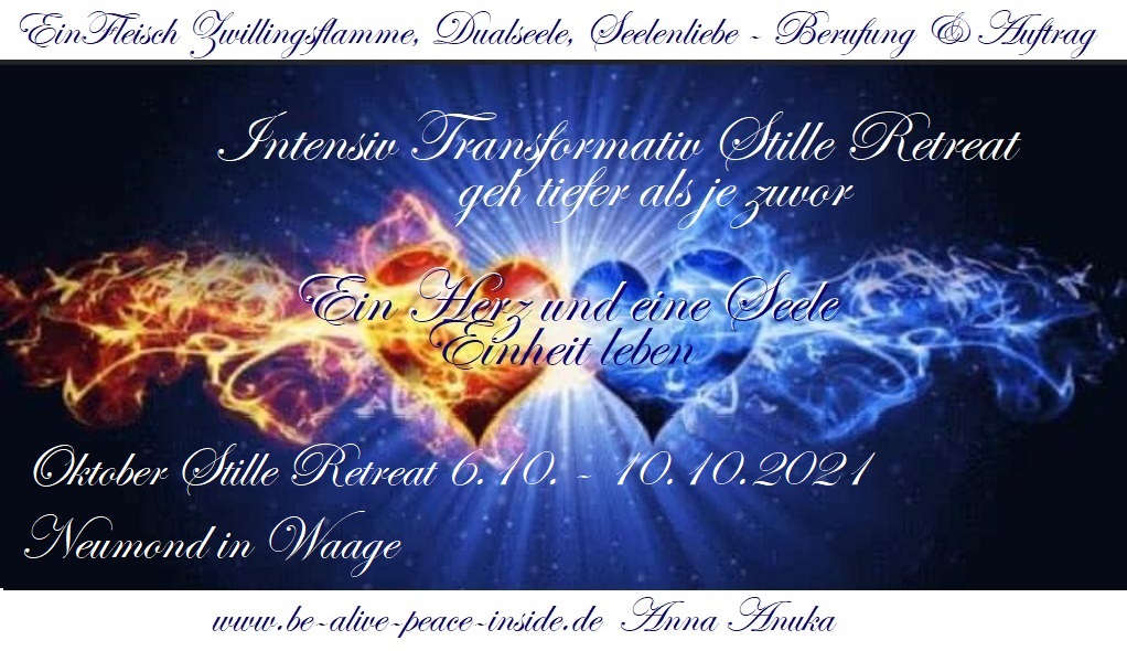 Oktober 5 Tage Stille Retreat vom 6.-10.10.2021 Neumond in Waage "Gerechtigkeit ist fühlbar" - Kostenbeitrag je 5.555 € (auch Paare, je)